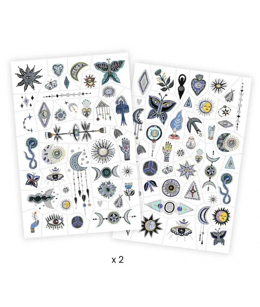 Ontdek de betoverende wereld van witte magie met de Djeco Tattoos Wicca. Deze set bevat meer dan 50 tijdelijke tatoeages, geïnspireerd op Wicca-symbolen, die een vleugje mystiek toevoegen aan elke look. De tattoos zijn voorzien van een metallic afwerking voor een sprankelend effect en zijn dermatologisch getest, waardoor ze veilig zijn voor de gevoelige huid van kinderen. Eenvoudig aan te brengen met een beetje water en net zo gemakkelijk te verwijderen. Perfect voor kinderen vanaf 3 jaar die hun creativiteit willen uiten en houden van magische thema's.