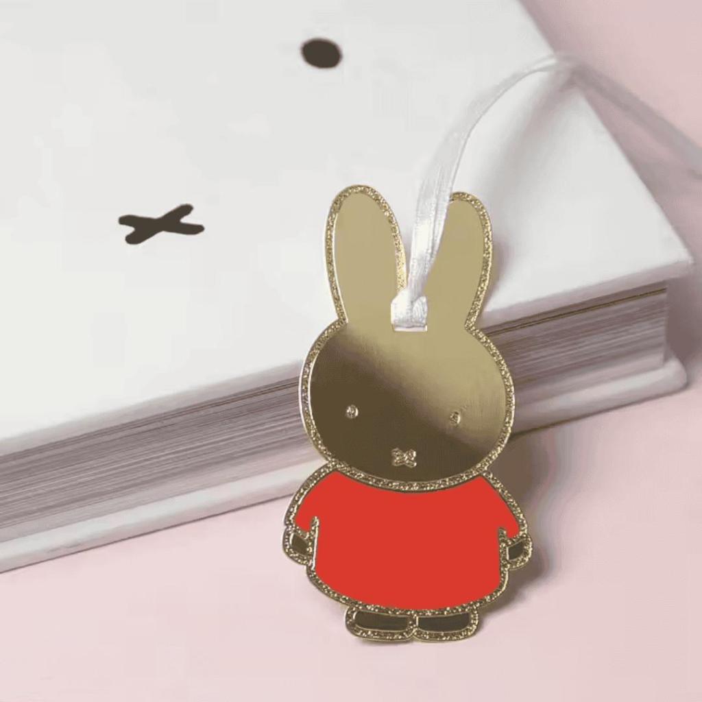 Boekenlegger & Hanger Nijntje – Gouden Miffy met Rode Jurk van Pluto Design