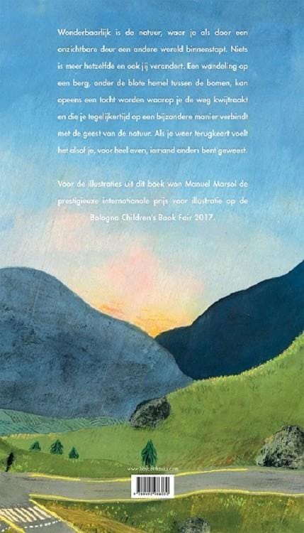 De berg is een prentenboek in zijn puurste vorm, geschilderd op panelen. De Spaanse illustrator Manuel Marsol neemt je eventjes mee op een bijzondere tocht door de wilde natuur. Voor de illustraties uit dit boek won hij de prestigieuze prijs voor illustratie op de Bologna Children’s Book Fair 2017.