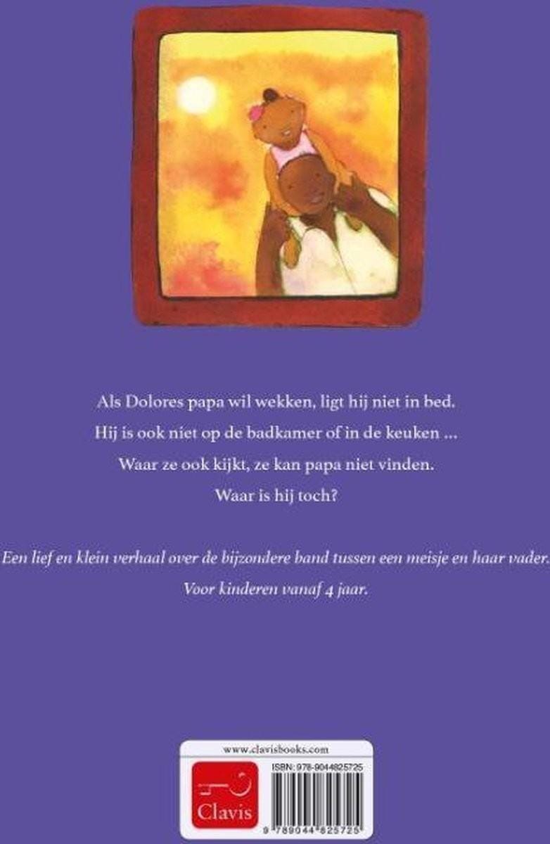 Als Dolores papa wil wekken, ligt hij niet in bed. Hij is ook niet op de badkamer of in de keuken … Waar ze ook kijkt, ze kan papa niet vinden. Waar is hij toch? Een lief en klein verhaal over de bijzondere band tussen een meisje en haar vader. Voor kinderen vanaf 4 jaar.