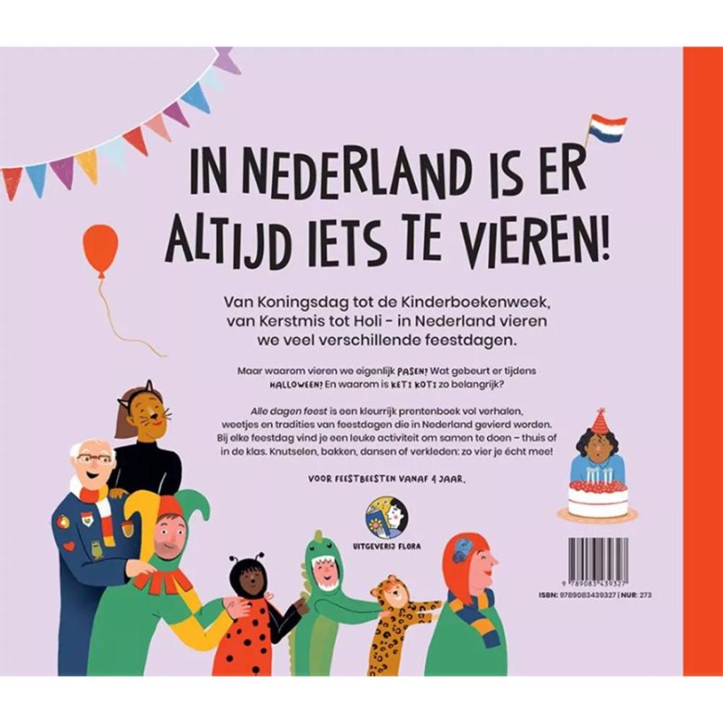 In Nederland is bijna elke maand wel een feestdag – en in Alle dagen feest ontdek je ze allemaal. Van Koningsdag tot Holi, van Kerstmis tot de Kinderboekenweek: dit vrolijke prentenboek laat kinderen op een toegankelijke en speelse manier kennismaken met de tradities achter onze feestdagen. Met korte verhalen, leuke weetjes en kleurrijke illustraties nodigt het boek uit om samen te lezen en daarna aan de slag te gaan. Bij elke feestdag staat een simpele activiteit die je thuis of in de klas kunt doen. Knutselen, bakken, dansen of juist stilstaan bij een belangrijk historisch moment – het kan allemaal. Een fijn, inclusief boek voor nieuwsgierige kinderen vanaf 4 jaar die willen weten waarom we vieren wat we vieren.