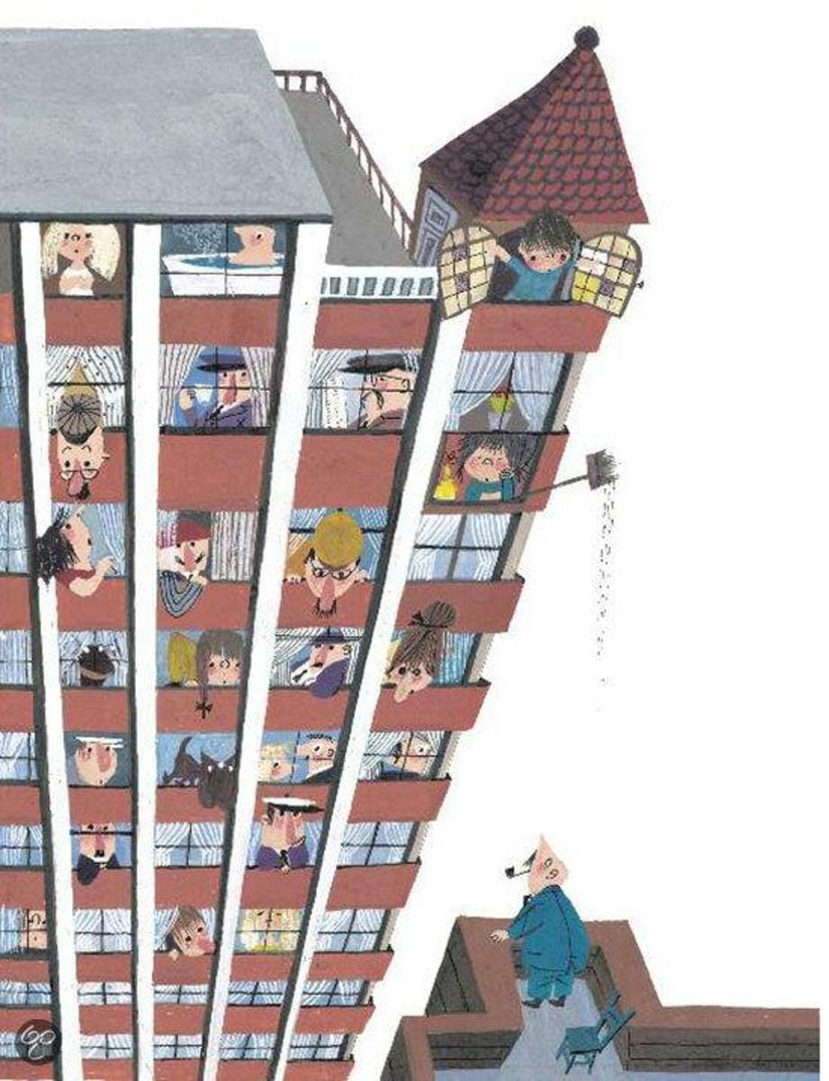 Pluk had een klein rood kraanwagentje. Hij reed ermee door de hele stad en zocht naar een huis om in te wonen. Af en toe stopte hij. En dan vroeg hij aan de mensen: 'Weet u niet een huis voor me?'