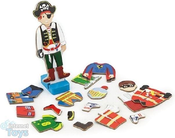 Mix & match met deze leuke magnetische aankleedpuzzel! Kinderen kunnen eindeloos combineren met 36 magnetische kledingstukken en accessoires om de jongen telkens een andere outfit te geven. Van stoer tot gek, alles mag!