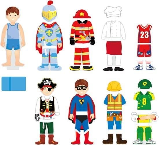 - Inhoud:ย magnetisch jongensfiguur in ondergoed, die in een blokje gezet kan worden en waartegen acht verschillende (magnetische) kleding sets geplakt kunnen worden.