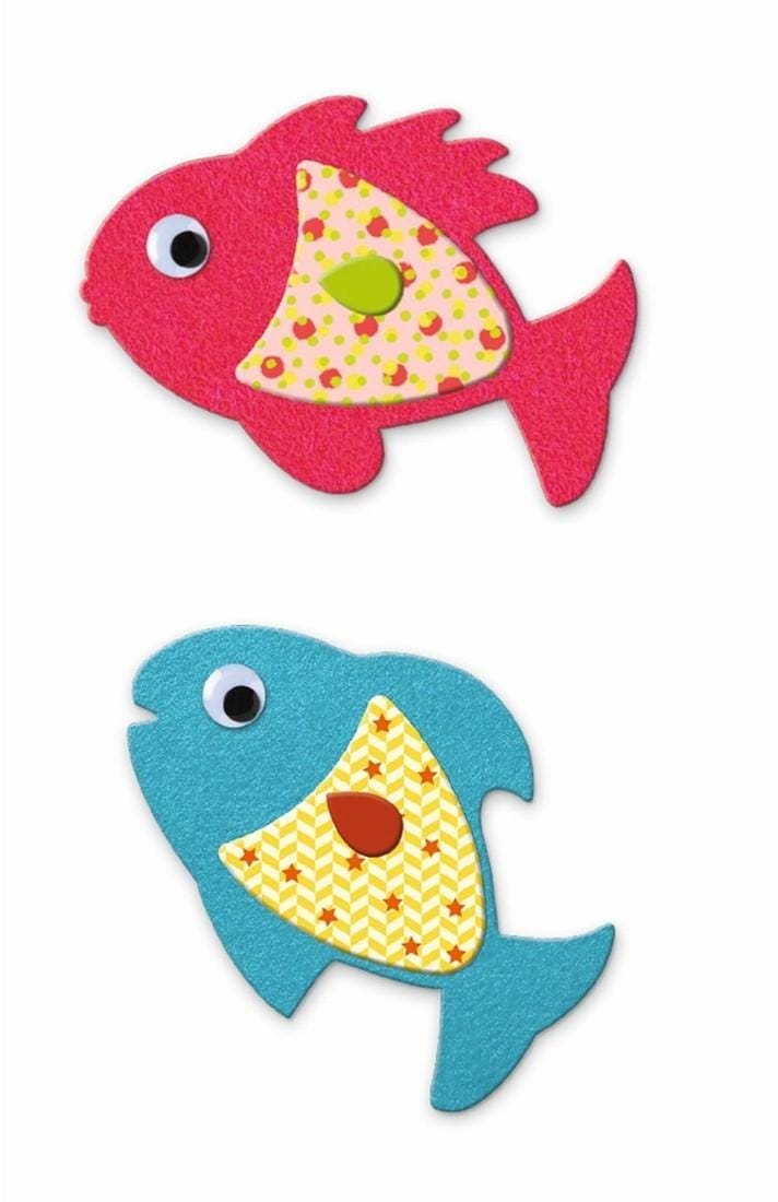 - Inhoud: velletjes met puffie stickers schubben, 24 vilten Vissen , 1 vel bewegende ogen en 1 vel vinnen.