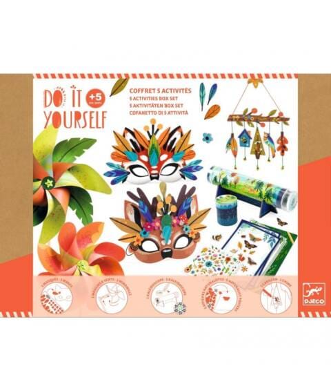 - Materiaal: FSC gecertificeerd papier en karton, stickers, veren en houten kralen