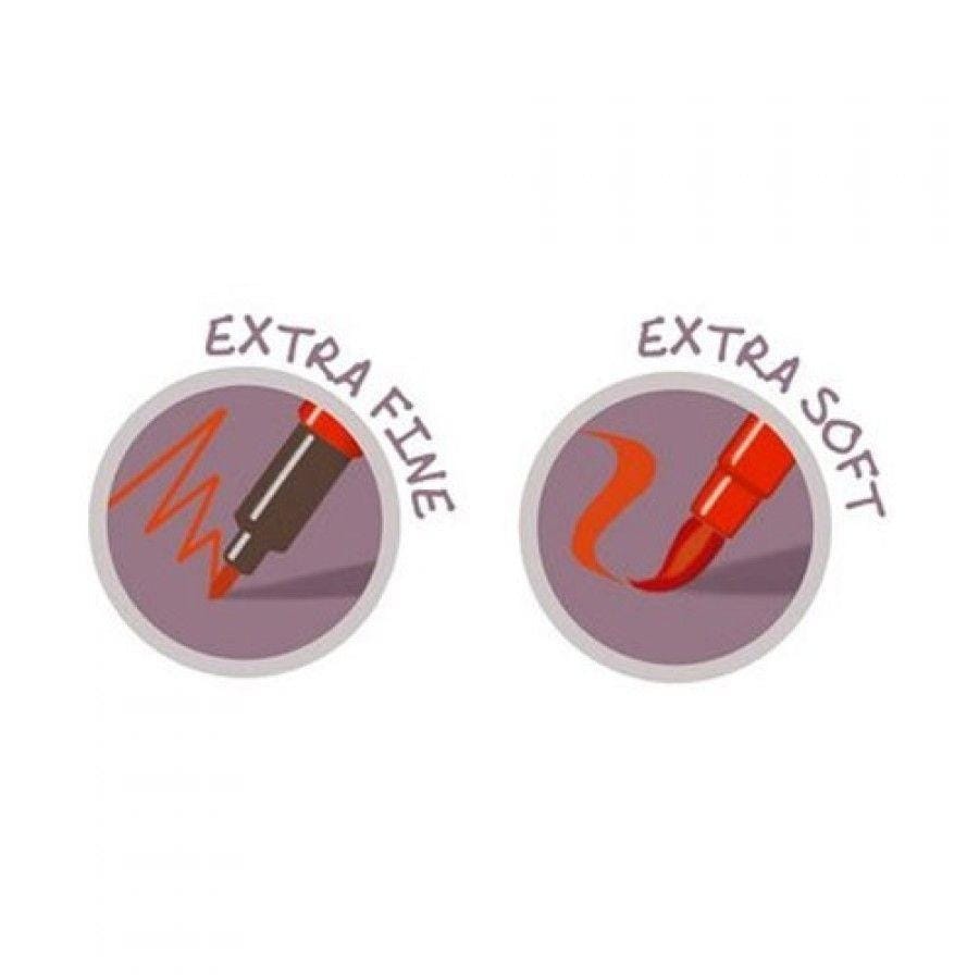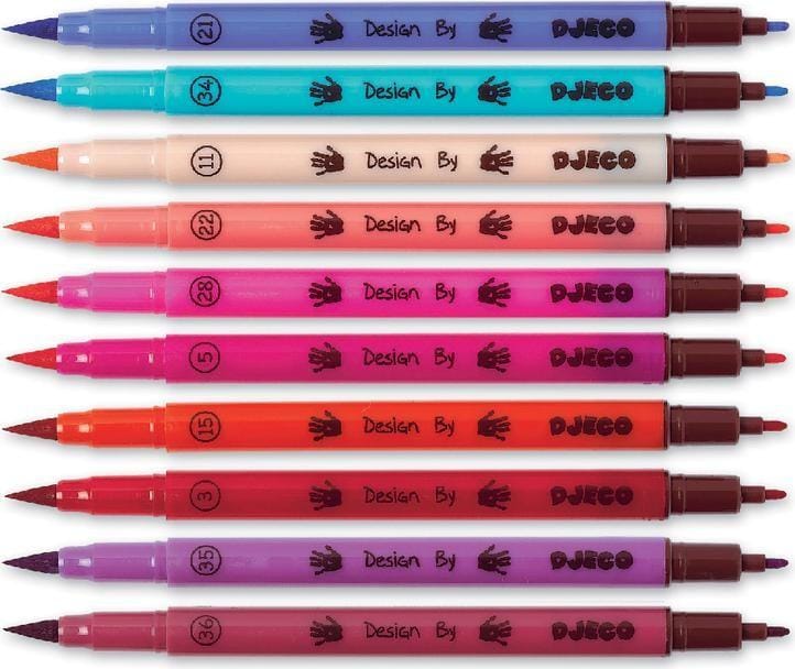 Met deze dubbele stiften van Djeco kan je extra veel kanten op. Ieder kleur heeft 2 kanten; aan de ene kant een fijne stift om dunne lijnen mee te kunnen maken, en aan de andere kant zit een hele zachte stift waarmee je bijna als een penseel kunt schilderen. Je kunt er zowel hele dunne, maar ook dikke lijnen mee zetten. En dan ook nog in een mooie vloeiende beweging. Wel even oefenen!