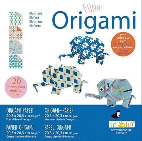 Voordat je de olifant uit de origami blaadjes kunt vouwen moet je al wel een beetje geoefend hebben. De instructie zit er  bj, maar je moet goed opletten hoe je moet vouwen en vooral is het belangrijk dat je dit heel precies doet. De 4 vrolijke dessins van het papier maken de olifanten wel heel bijzonder, zeker wanneer je de oogstickers hebt opgeplakt. Iedere verpakking bestaat uit 20 blaadjes.