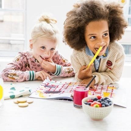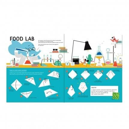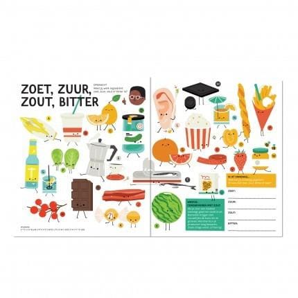 Aan tafel! En neem dit avonturenboek mee! Het magazine staat vol met heerlijke puzzels, de knapperigste verhalen en de sappigste weetjes. Leer spelenderwijs meer over eten met dit geweldige boekje van designstudio Makii.