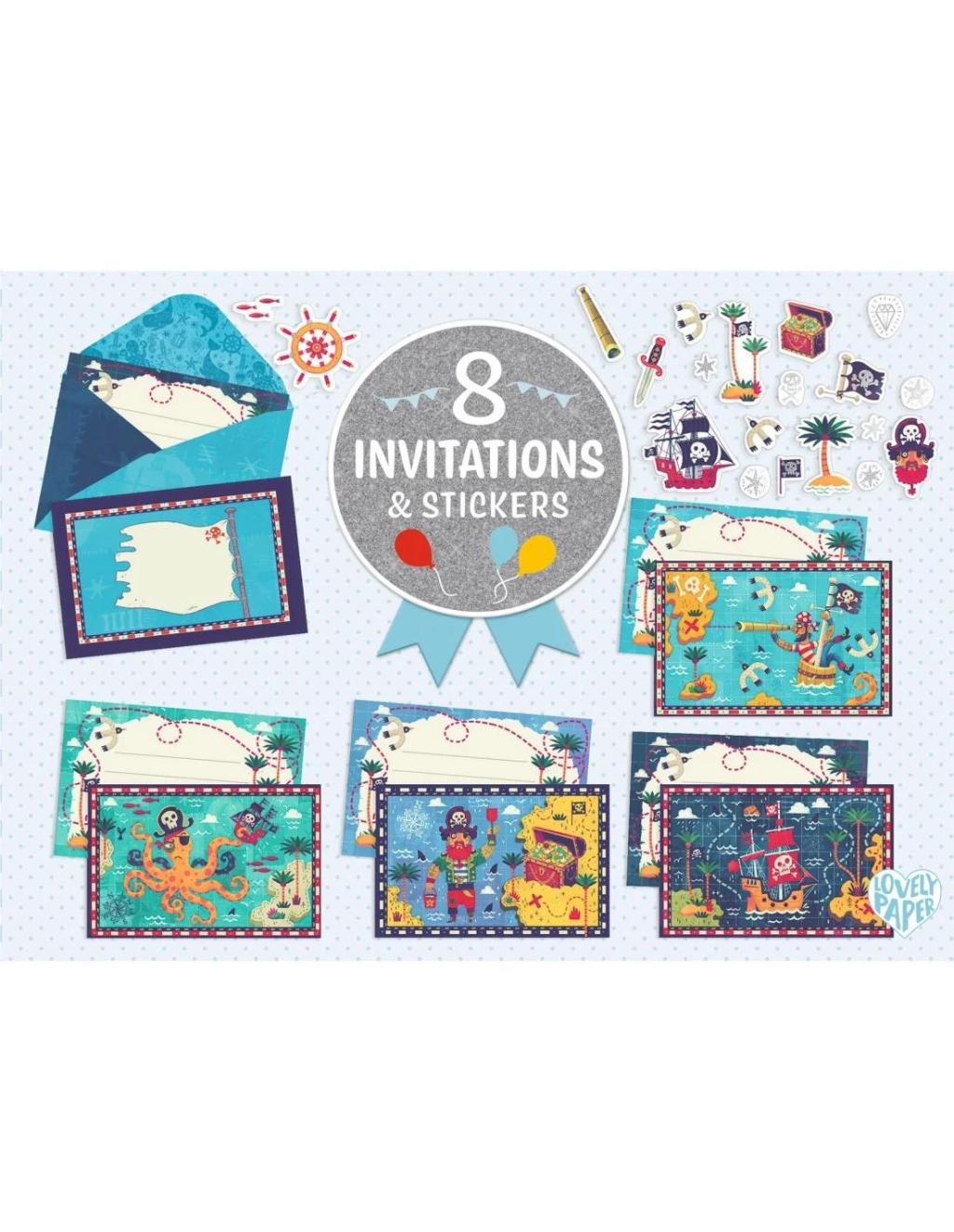 Hijs de zeilen en nodig iedereen uit voor een spannend avontuur met de uitnodigingen Allemaal aan boord! van Djeco. Deze stoere set bevat 8 uitnodigingskaarten, 8 bijpassende enveloppen en 2 stickervellen. De kaarten zijn rijk geïllustreerd met piratenschepen, schatten en zelfs een reusachtige octopus – perfect voor kinderen die houden van avontuur en fantasie. Dankzij het stevige papier en de kleurrijke afwerking zijn deze uitnodigingen ideaal om een piratenfeestje of ander kinderfeest extra bijzonder te maken.