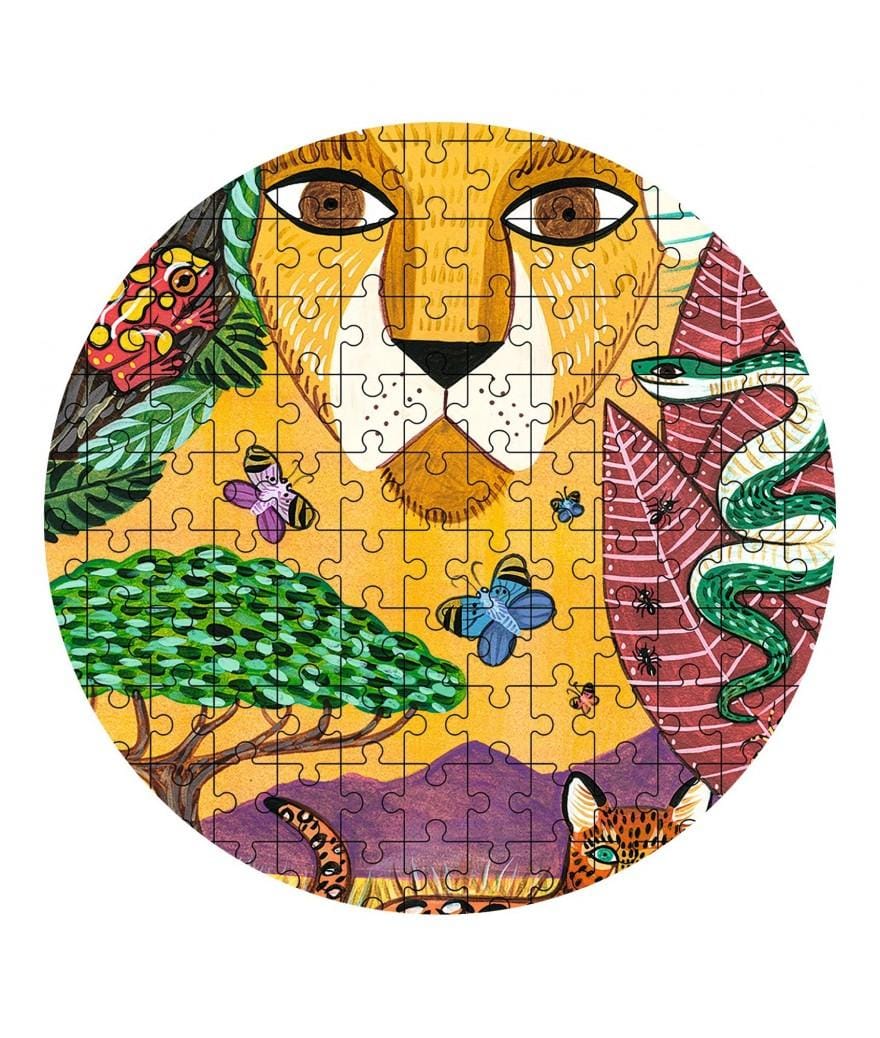Ontdek de wilde wereld van de savanne met de unieke Djeco puzzel Leeuw! Deze puzzel van 350 stukjes heeft een bijzondere vorm: het silhouet van een leeuw. Terwijl je de puzzel in elkaar zet, ontdek je een levendige wereld vol kleurrijke dieren, van giraffes en zebra's tot slangen en vlinders. De meegeleverde poster helpt je bij het leggen van de puzzel en is daarna een prachtig decoratief element voor je kamer.