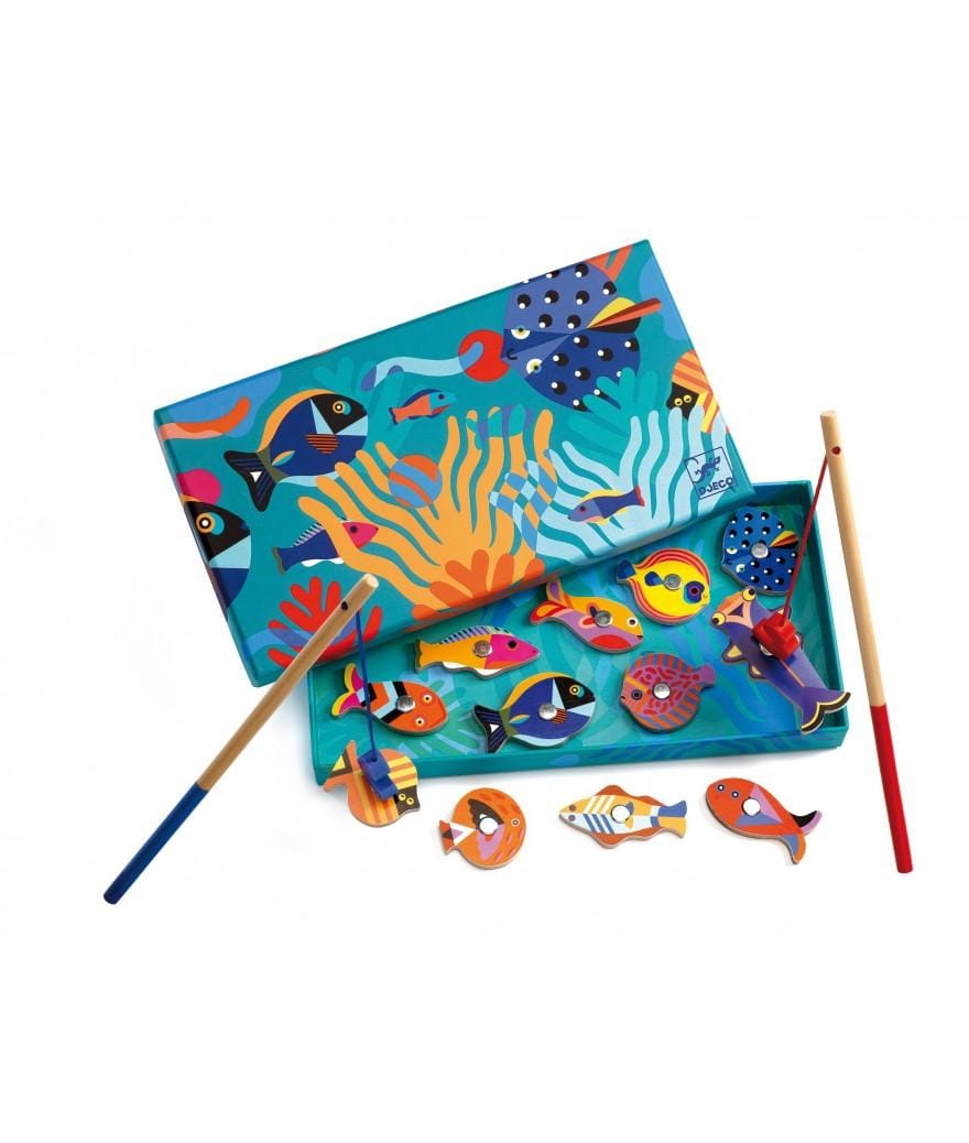 Vang de mooiste visjes met dit leuke Djeco magnetisch visspel! Met de twee houten hengeltjes en de kleurrijke visjes is het urenlang plezier gegarandeerd. Perfect om de fijne motoriek te ontwikkelen en de oog-handcoördinatie te verbeteren.