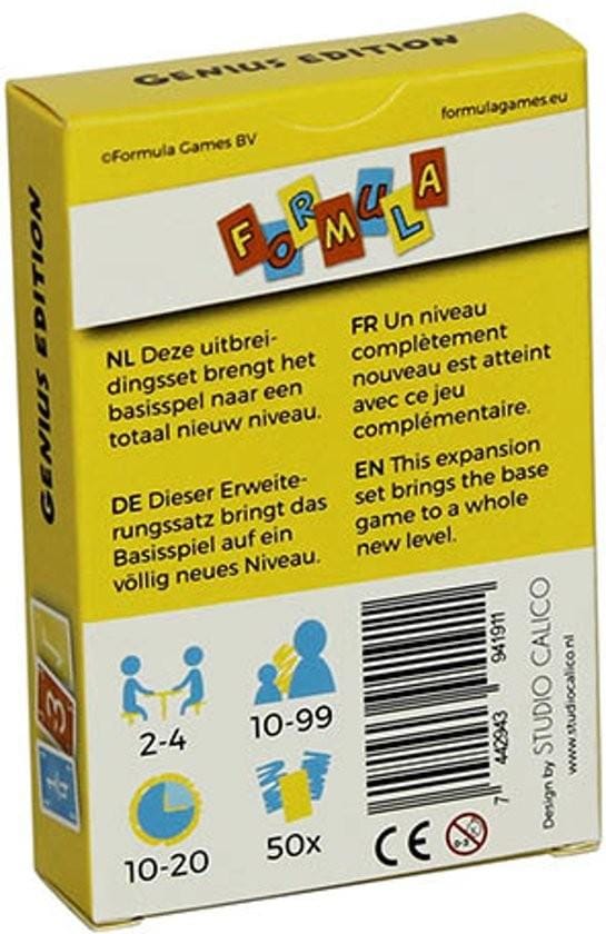 Bijna geen kind houdt van rekenen, maar spelletjes spelen vinden ze wel leuk! Met het spel Formula moeten ze ongemerkt toch gaan rekenen en zal deze basis vaardigheid ongemerkt enorm toenemen. Deze uitbreidingsset brengt het basisspel naar een totaal nieuw niveau. Deze set past in het doosje van de basisset. Wel zo makkelijk met opruimen.