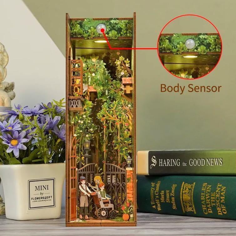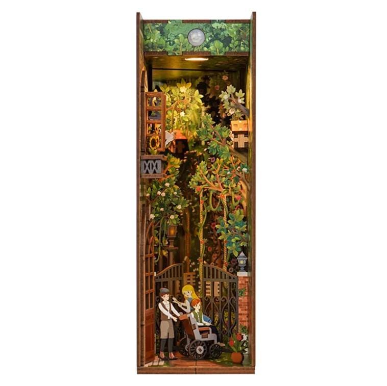 Ontdek een verborgen wereld tussen je boeken met de DIY Boekensteun Geheime Tuin. Dit betoverende 3D bouwpakket bestaat uit 80 voorgesneden houten onderdelen die samen een sprookjesachtige tuin vormen – compleet met poort, planten en sfeervolle LED-verlichting.
