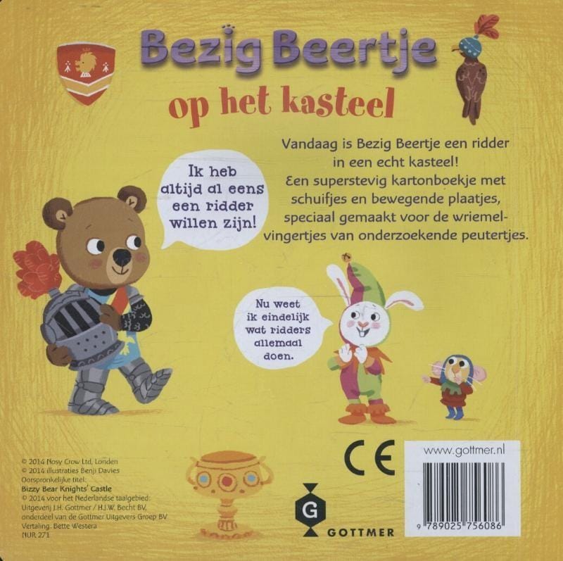 Dit stevige kartonboekje met supersterke schuifjes is ideaal voor peuters die van stoere dingen houden. Al schuivend kunnen ze op elke pagina plaatjes laten bewegen of iets tevoorschijn toveren. De eenvoudige tekst op rijm neemt ze mee op avontuur. In de boeken over Bezig Beertje komen populaire peuterthema's aan de orde: zoals Bezig Beertje die als ridder meedoet aan een riddertoernooi.