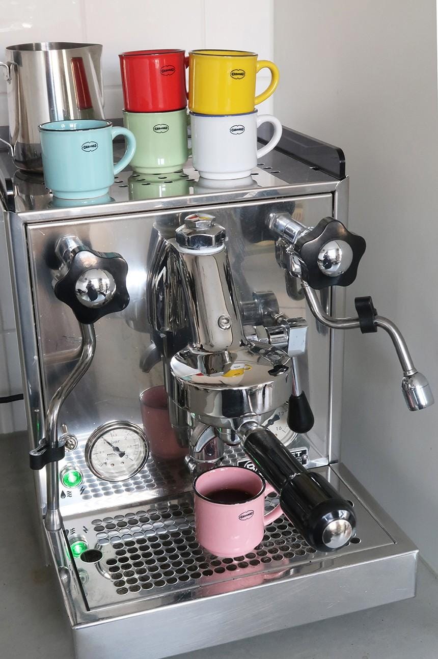 Wanneer je niet beter weet denk je dat deze mokken gemaakt zijn van emaille. Wanneer je de mokken oppakt om uit te drinken blijken ze echter van keramiek te zijn. Wel zo handig aangezien je deze mokken dus wel veilig in magnetron of vaatwasser kunt zetten. Leuk om te combineren met de andere gekleurde Espresso Mokken van Cabanaz.