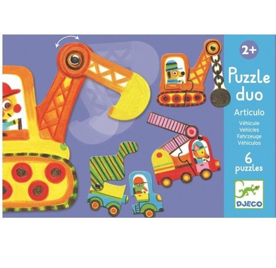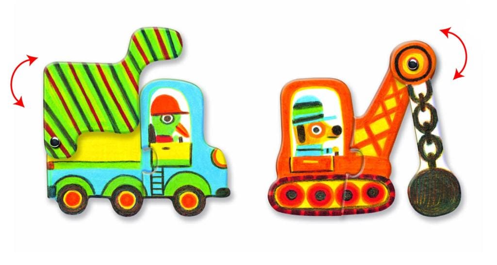 Daag je kleine uit met de puzzels van Djeco. De Duo Puzzel Voertuigen is speciaal ontworpen voor kinderen vanaf 2 jaar. De 6 puzzeltjes bestaan elk uit twee delen die samen een groot bouwvoertuig vormen, zoals een hijskraan. Het gave detail van ontwerper Benjamin Chaud zijn de roterende delen op de puzzel. Goede puzzel voor de allerkleinsten waarbij vaardigheden als bewegingen worden gestimuleerd.