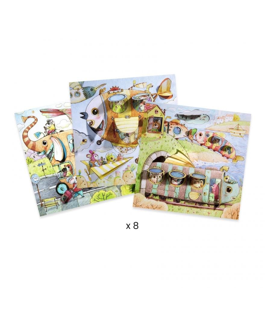 - Inhoud: 8 dubbele kaarten om in te kleuren (4 kaarten X2). Met flapjes en uitsparingen in 3D.