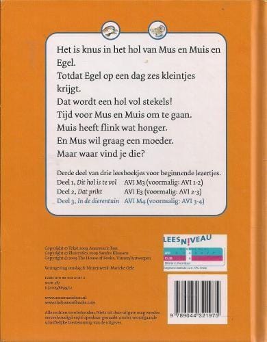 Het is knus in het hol van Mus en muis en Egel. Ttdat Egel op een dag zes kleintjes krijgt. Dat wordt een hol vol stekels! Tijd voor Mus en Muis om te gaan. Muis heeft flink wat hanger. En Mus wil graag een moeder. Maar waar vind je die?