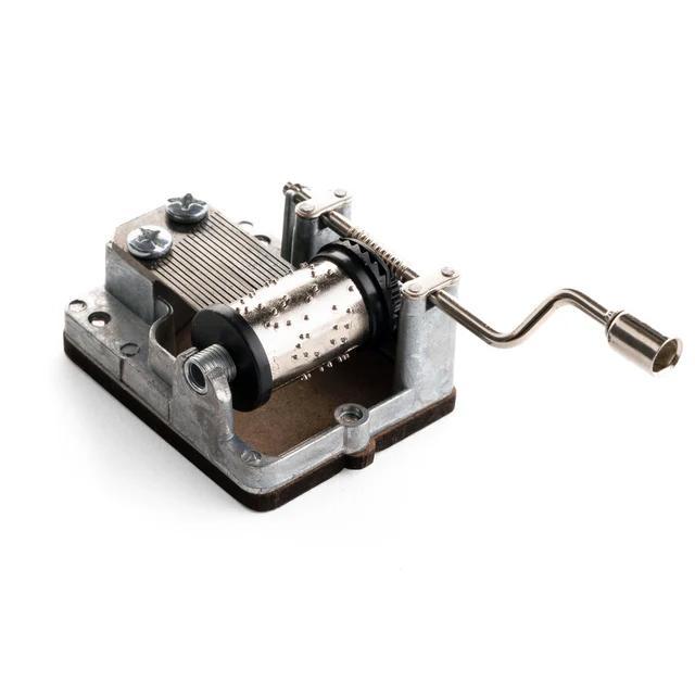 - Draai aan het hendeltje om het muziekdoosje te laten spelen