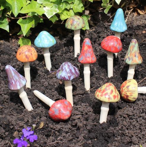 • Keramieken paddenstoelen in 6 verschillende ton-sur-ton kleuren glazuur