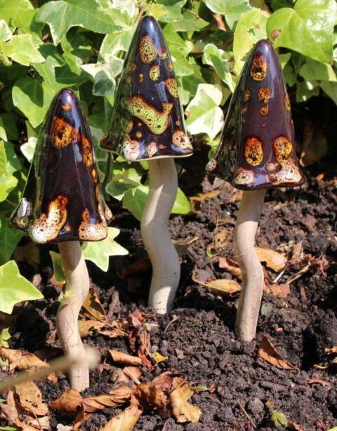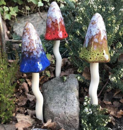 • Paddenstoel Keramiek in drie verschillende vormen: Punthoed-Bolhoed-Stompe Bulthoed
