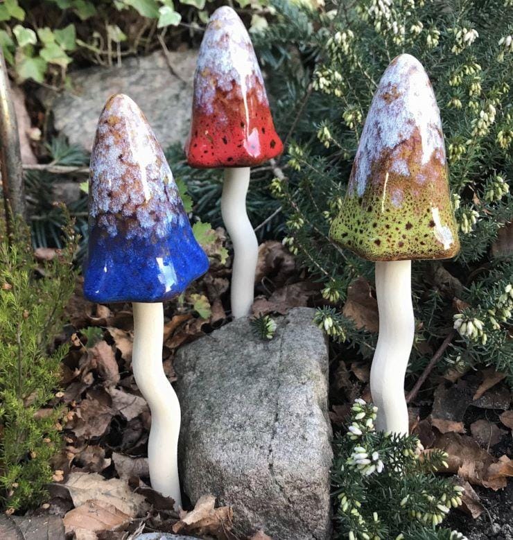 Wauw wat een plaatje! Deze paddenstoelen van het Deense design Maj hebben prachtige ntuurlijke kleuren in de hoedjes. De hoed en steel worden los van elkaar geleverd. Zet meerdere paddenstoelen bij elkaar en luister naar het geklingel in de wind van de keramische hoedjes die elkaar net raken. Verkrijgbaar in meerdere kleuren en maten. Leuk om met elkaar te combineren.