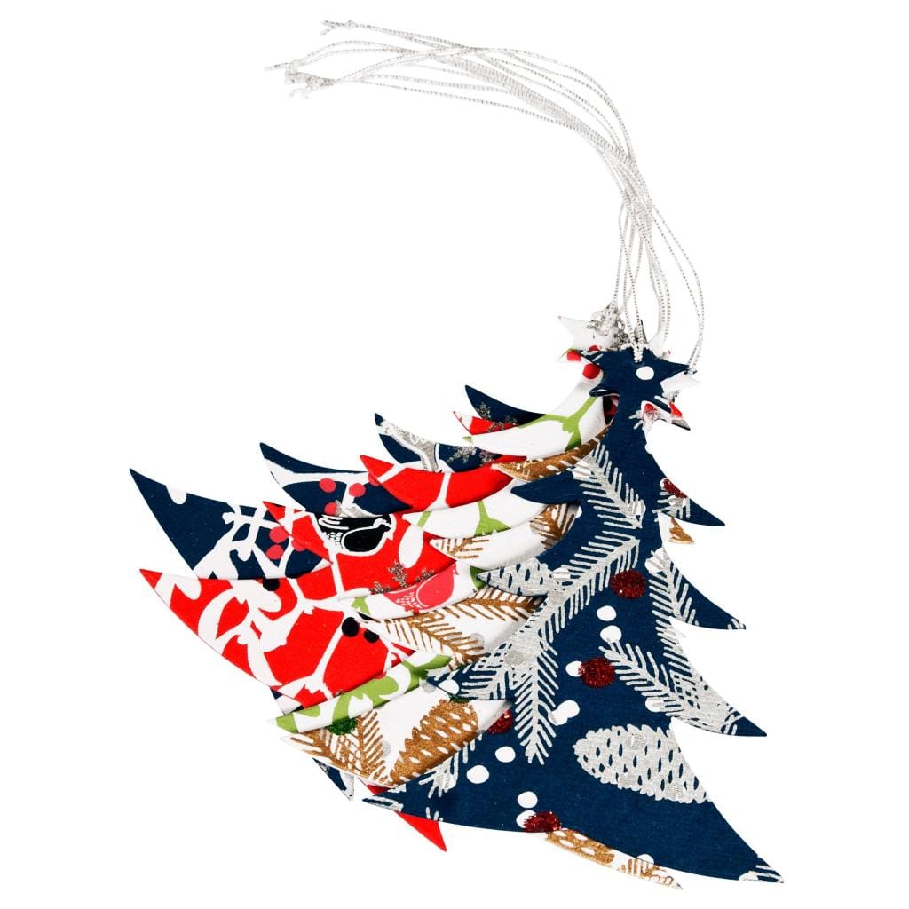 Prachtige gedecoreerde papieren kerstbomen om op een simpele manier je huis in kerstsfeer te brengen. Het dikke, grove papier is in verschillende kleuren geverfd en vervolgens met een kerstprint in zilver en goud bedrukt. Iedere verpakking bevat 5 kerstbomen. Een prachtig Scancinavisch design van Pluto.