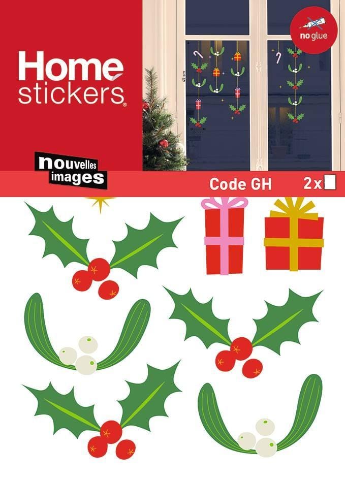 Tover je eigen huis om helemaal om in de kerstsfeer en geniet van de gezellige dagen. Nouvelles Images heeft een ruim assortiment kerstversiering voor op muren en ramen. Zoals deze hulst, een symbolische tak gecombineerd met vrolijk ingepakte cadeautjes. De stickers zijn elektrostatische en kun je elk jaar opnieuw gebruiken. Mix and Match verschillende varianten voor een spetterende Kerst!
