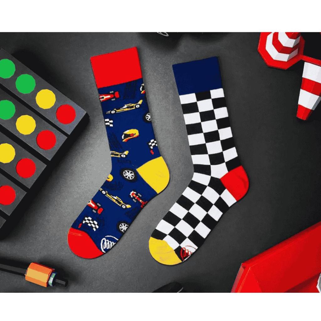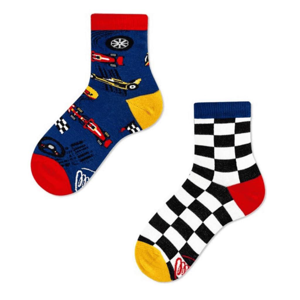 Start de dag vol energie met deze vrolijke Formula Racing kindersokken van Many Mornings! De sokken hebben twee verschillende prints: de ene sok met raceauto’s en finishvlaggen, de andere met een klassiek zwart-wit geblokt racepatroon. Samen vormen ze een perfect team voor kleine snelheidsduivels.