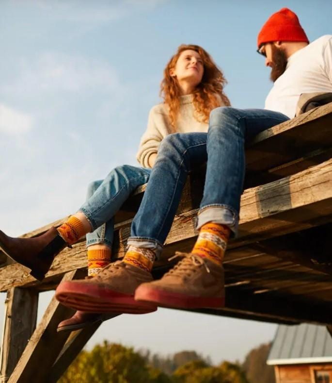 Many Mornings heeft nu ook lekkere dikke, warme kerstsokken, thuis voor op de bank. Deze Warm Fox sokken hebben een mooie okergele kleur waarin een traditioneel patroon met de snuit van een rode vos in is verwerkt.