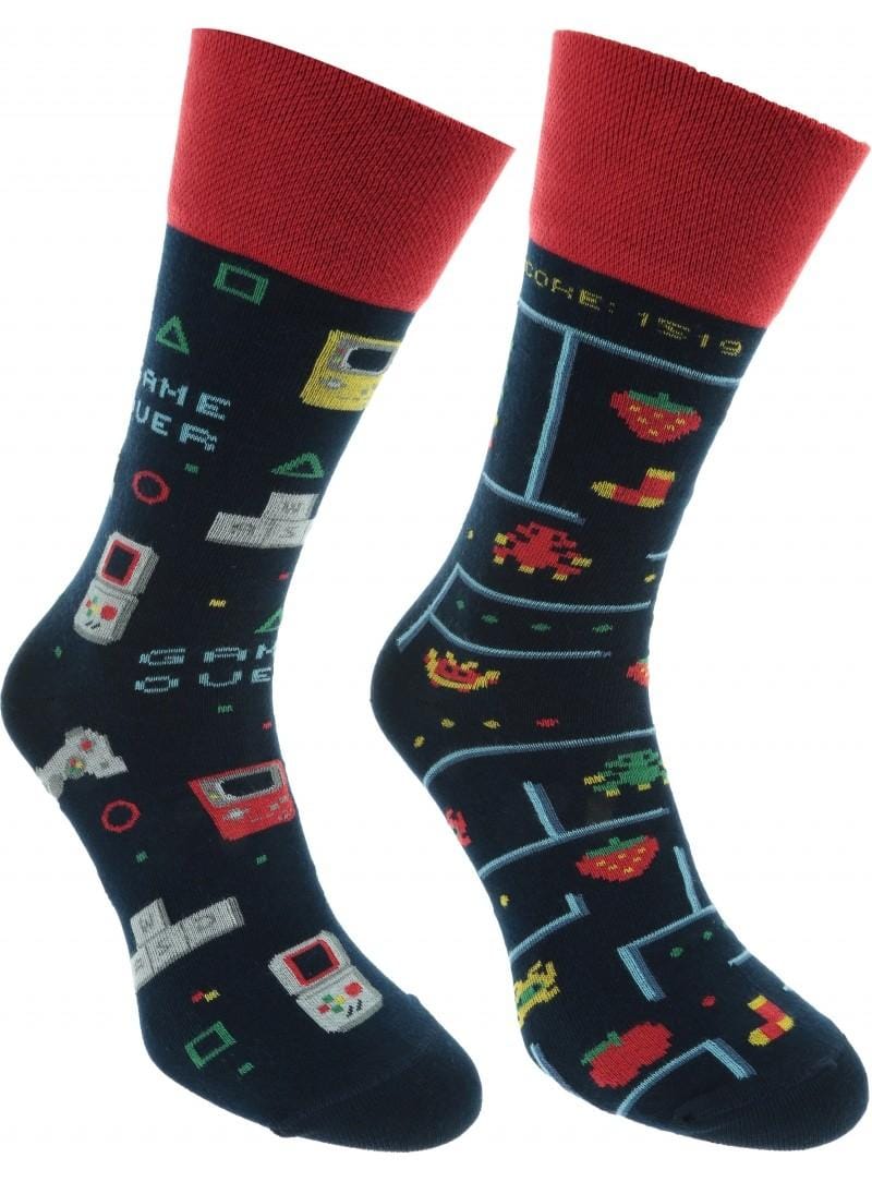 Voor alle game fanatiekelingen zijn dit sokken die niet aan je outfit mogen ontbreken. Leuk ook om cadeau te geven. Deze Poolse sokken zijn van mooie kwaliteit, gemaakt door een fabriek met een lange traditie in het maken van kwaliteit sokken. De sokken hebben ieder een eigen motief, al moet je daar bij dit paar wel goed naar kijken.