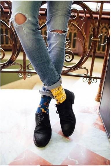 Sokken waar muziek in zit. Fantastische sokken voor jezelf of voor alle muziekliefhebbers om je heen. Leuk cadeau voor muzikanten. Deze vrolijke mismatch sokken geven een vrolijke noot aan je outfit. Subtiel, zo net onder de broek. Twee verschillende sokken binnen hetzelfde muziekthema met veel verschillende soorten muziekinstrumenten.