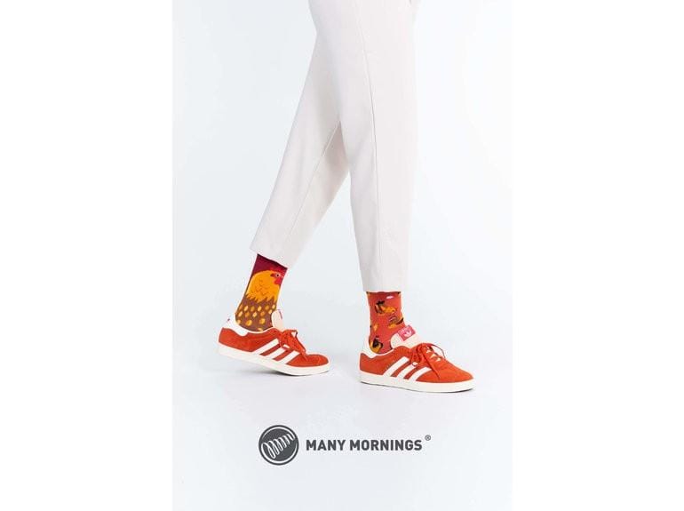Leuke sokken voor jezelf of om cadeau te geven. De MisMatch sokken van Many Mornings zijn 2 verschillende sokken die wel een perfect paar zijn. Gemaakt vanuit eenzelfde thema. De Kip met de Gouden Eieren staat op deze 2 toffe sokken gemaakt van katoen met polyamide. Verkrijgbaar in 3 maten voor alle schoenmaten van 35 t/m 46.