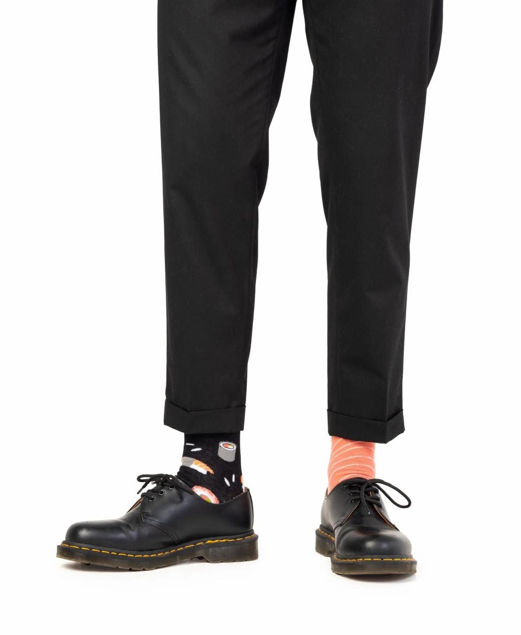 Voor de sushi-lover met smaakvolle voeten: deze sokken in maat 35–38 zijn om op te eten (maar liever niet echt). De zwarte sok toont kleurrijke sushirollen en rijstkorrels, terwijl de zalmroze sok geïnspireerd is op een plakje zalm sashimi.