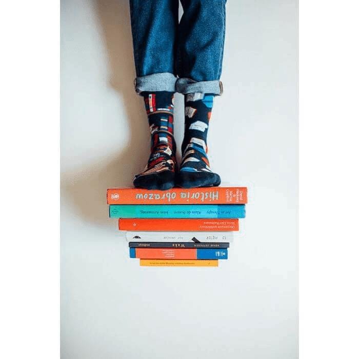 Voor iedereen die van boeken en gekke sokken houdt zijn deze toffe sokken van Many Mornings natuurlijk een abslolute musthave. De ene sok vol met dichte boeken in een boekenkast, de ander vol met opengeslagen boeken. Een paar mooie MisMatch sokken van het Poolse Many Mornings. Verkrijgbaar in 3 maten voor schoenmaten 35 t/m 46.