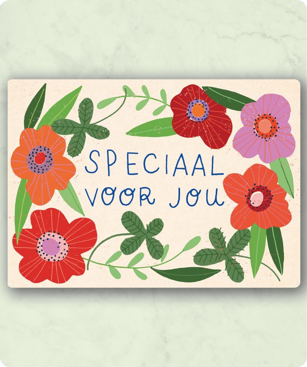 De "Speciaal Voor Jou" postkaart van Zintenz is een stijlvolle en betekenisvolle manier om iemand te laten weten hoeveel ze voor je betekenen. Met een eenvoudige, maar krachtige boodschap, is deze postkaart perfect voor allerlei gelegenheden waarbij je je waardering of liefde wilt uiten. Gedrukt op 100% gerecycled papier, met milieuvriendelijke inkt, is dit niet alleen een gebaar van liefde, maar ook van zorg voor de planeet.
