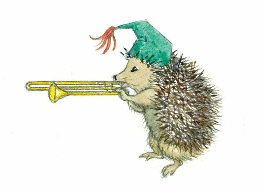 Een egel met flair! Deze vrolijke ansichtkaart van Molly Brett toont een egel met een trombone en een feestelijk groen mutsje met veer. Een eenvoudige maar sprekende illustratie die direct een glimlach oproept. Ideaal als muzikale groet, felicitatie of als kaartje voor een muziekliefhebber. Zoals altijd combineert Molly Brett charmante dieren met een zachte, nostalgische stijl.
