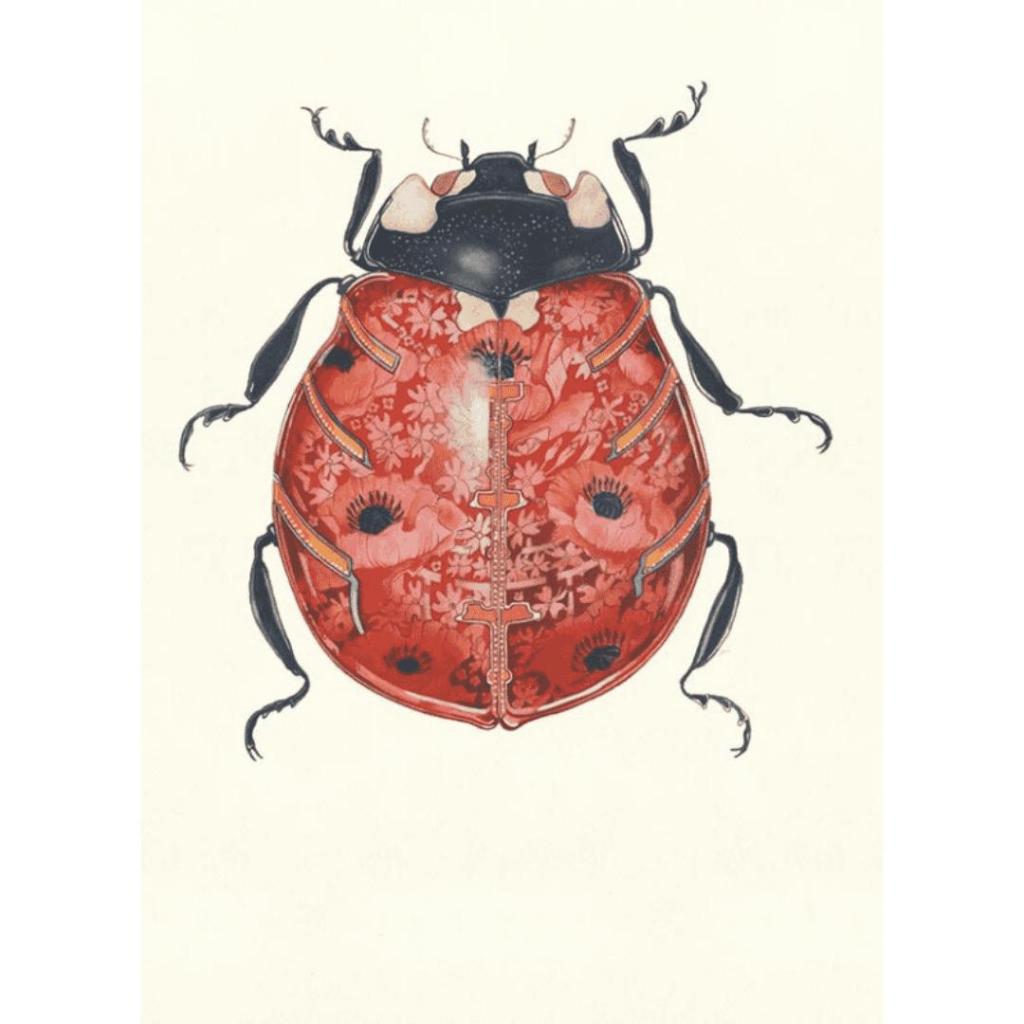 Deze elegante dubbele wenskaart van illustrator Daniel Mackie toont een rood lieveheersbeestje waarvan de vleugels zijn versierd met een rijk bloemenpatroon. Een kunstzinnig en symbolisch ontwerp dat perfect past bij gelukswensen, felicitatie of zomaar een persoonlijke boodschap. De kaart is blanco van binnen, zodat je zelf de woorden kunt toevoegen die passen bij de gelegenheid. Gedrukt op stevig 330 grams papier en geleverd met een witte envelop in een beschermende blister.