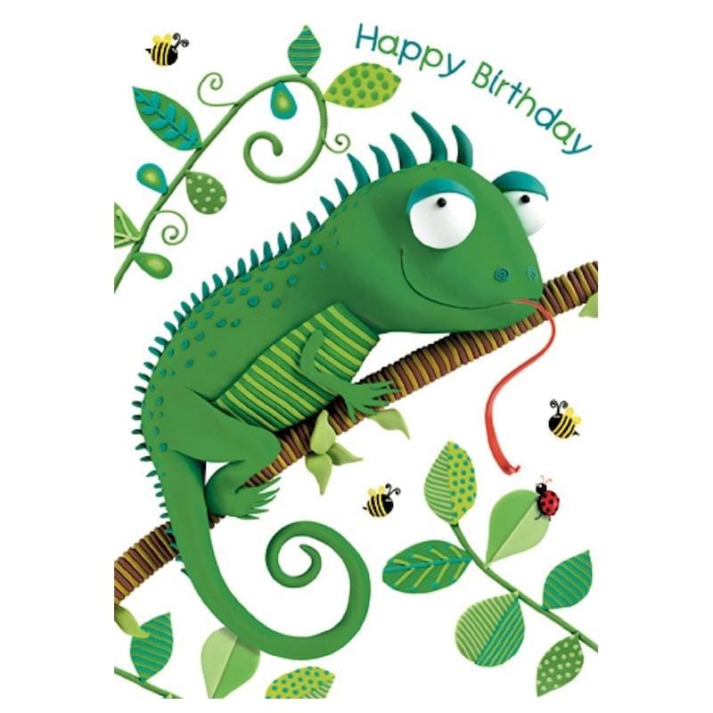 Een tropisch vrolijke verjaardagsgroet! De Dubbele kaart – Green Iguana tovert meteen een glimlach op het gezicht van de jarige. De grappige groene leguaan slingert over de takken tussen kleurrijke bladeren, bijtjes en een nieuwsgierige lieveheersbeestje. De kaart is rijk geïllustreerd met reliëf en details die eruit springen. Ideaal voor kinderen én volwassenen die van speelse en originele kaarten houden. Inclusief envelop.