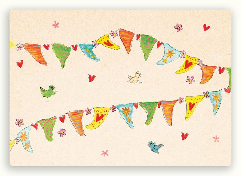 Vrolijke vlaggetjes, slingers in de lucht – met de Zintenz kaart ‘Feestelijke Vlaggentjes’ breng je meteen een feestje per post. Perfect voor een verjaardag, een mijlpaal of zomaar een blije boodschap. De illustratie barst van de vrolijkheid, terwijl de kaart zelf bewust is geproduceerd op gerecycled landbouwafvalpapier en met milieuvriendelijke inkt. Duurzaam, feestelijk en altijd een goed idee!