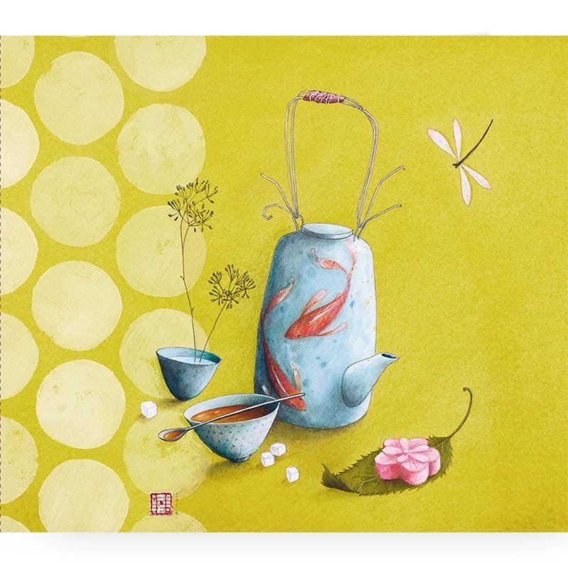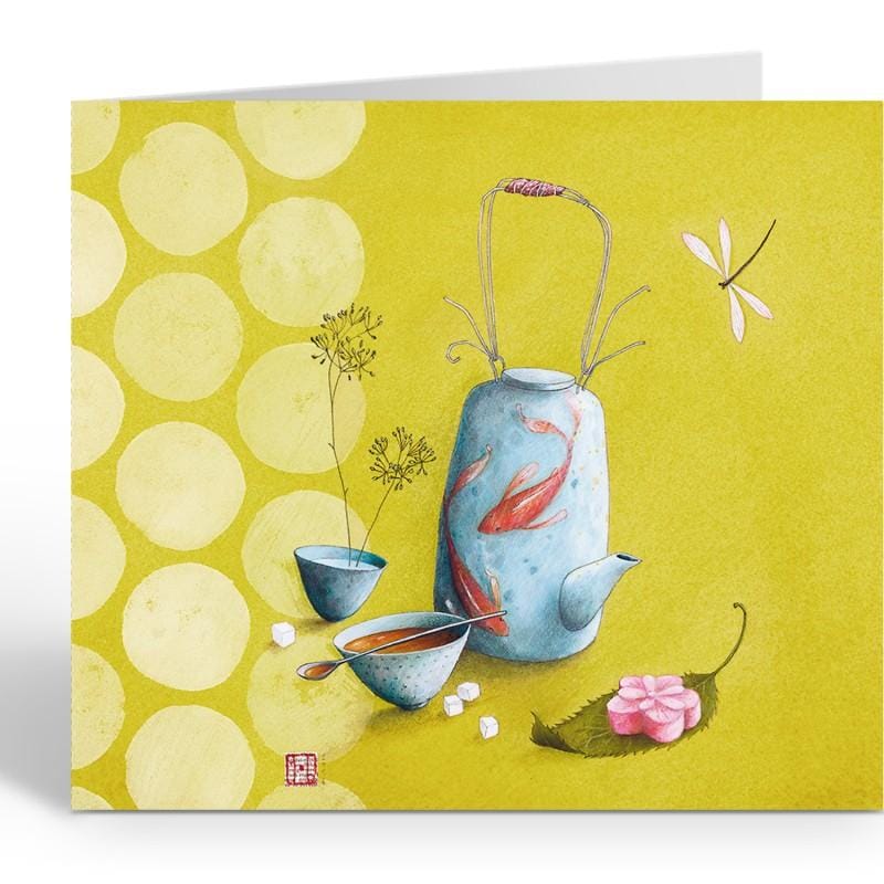 Wil je iemand uitnodigen om gezellig bij te kletsen onder een kopje thee? Hoe leuk is het dat per post te vragen! Deze prachtige dubbele kaart van Gaelle Boissonnard leent zich hier perfect voor. Een klein kunstwerk in een enveloppe!