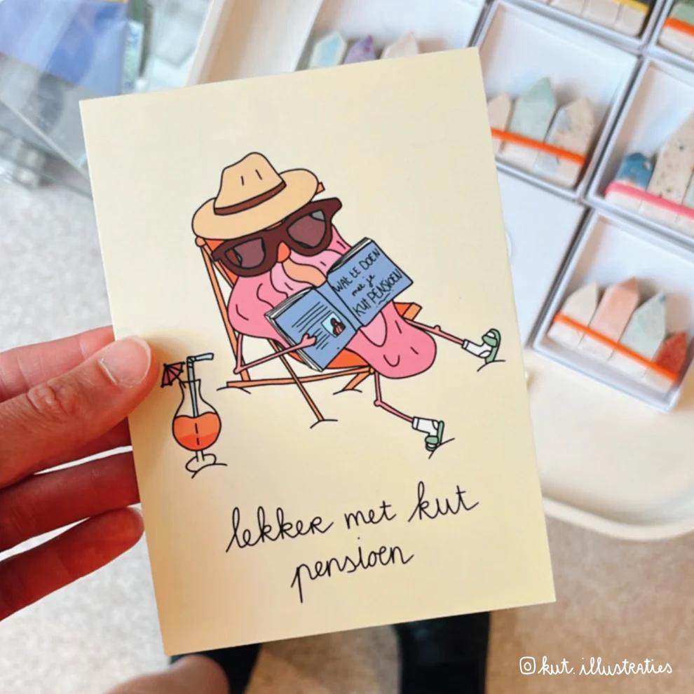 Kaart Lekker met Kut Pensioen – A6 kaart van KUT.illustraties