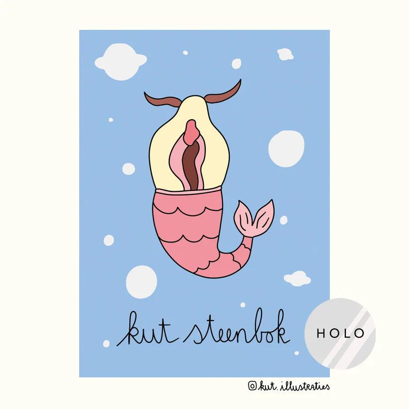 Verras de Steenbok in je leven met de KUT. Kaarten – Kut Steenbok! Deze hilarische en speelse kaart is perfect voor iedereen geboren onder het sterrenbeeld Steenbok. Met een knipoog naar hun karakter en een opvallende holografische afwerking is deze kaart een echte eyecatcher. Ideaal om iemand te laten lachen en een glimlach op hun gezicht te toveren. De kaart is gedrukt op stevig sulfaatkarton en gemaakt van FSC-gecertificeerd papier, wat het een milieuvriendelijke keuze maakt. Het A6-formaat biedt genoeg ruimte voor een persoonlijke boodschap, waardoor het perfect is voor verjaardagen, spontane verrassingen of grappige momenten.