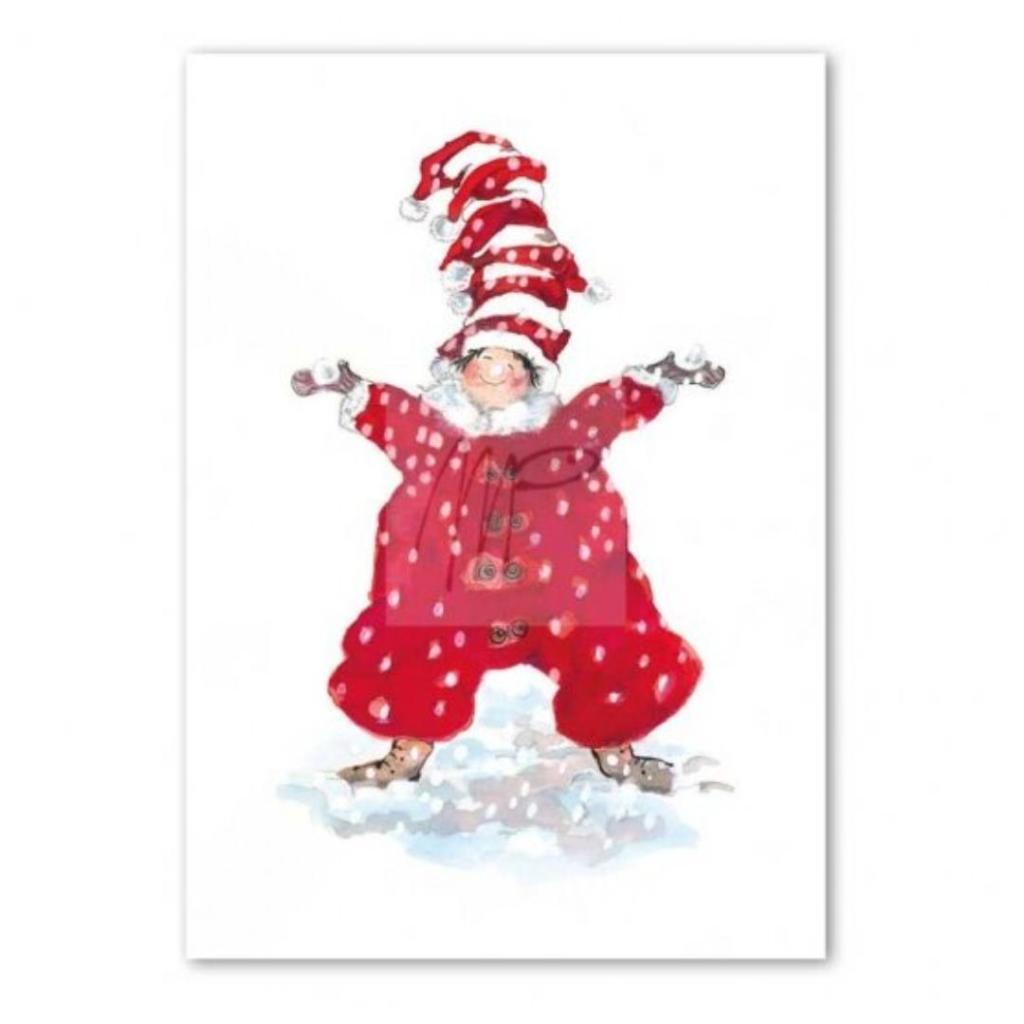 Sneeuwpret en winterse gezelligheid! Deze kaart toont drie vrolijke kinderen met bontgekleurde mutsen in een besneeuwd landschap. Ideaal voor een hartverwarmende kerstboodschap.