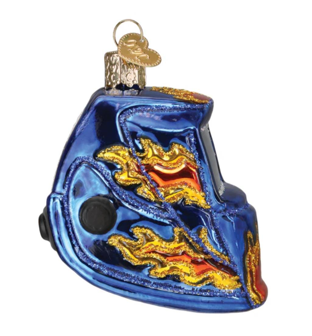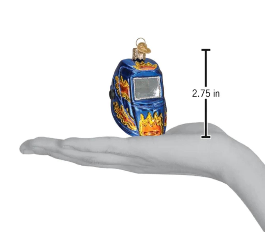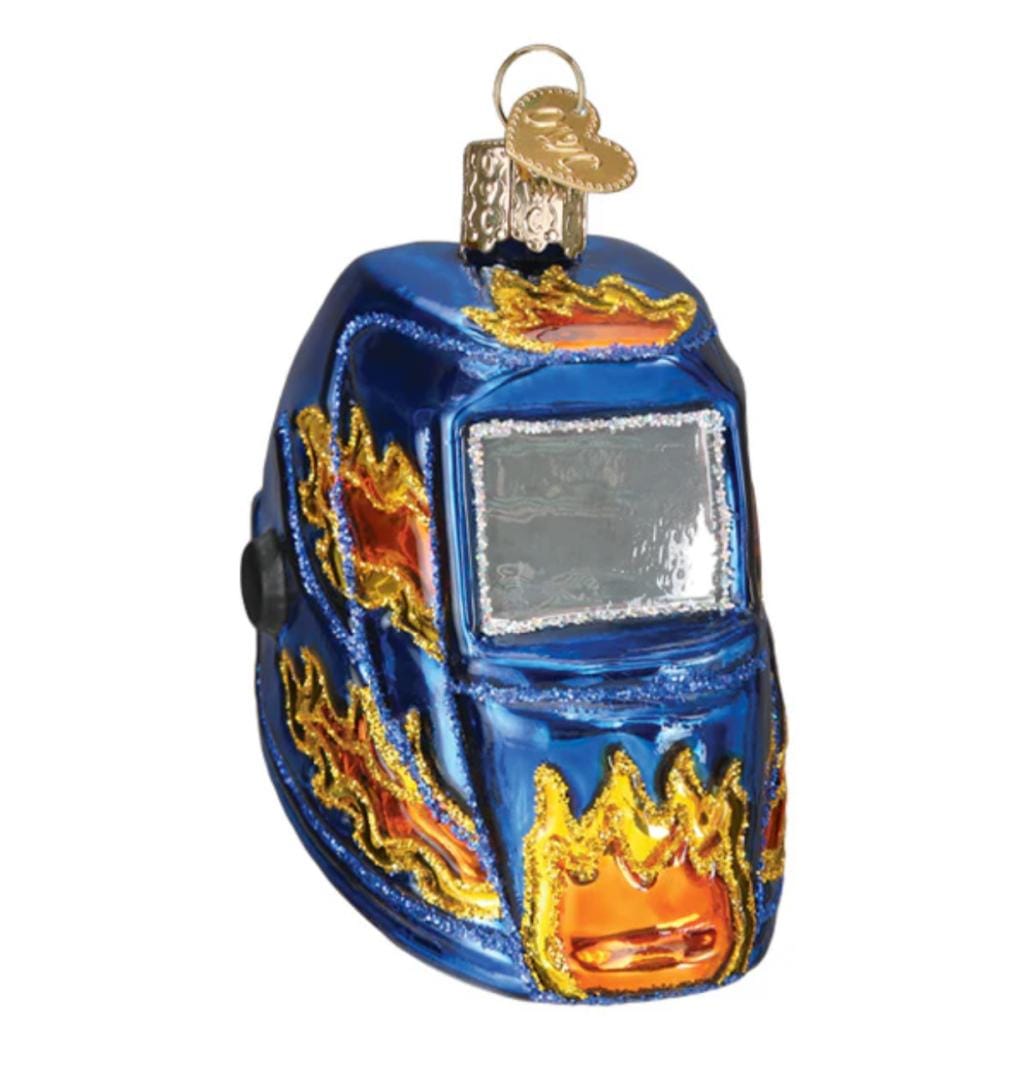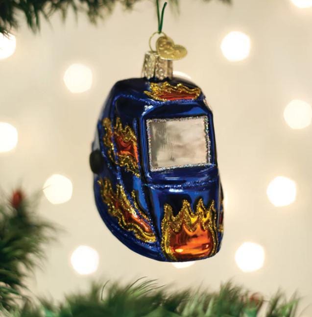 Een unieke kerstbal voor de echte vakman! Met een lashelm motief, perfect voor een industriële kerstboom.