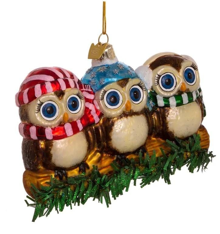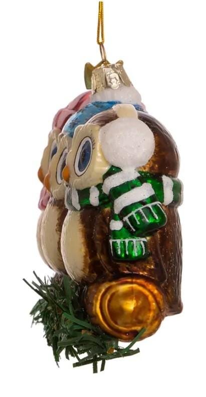 • Kerstbal Drie Uilen op een Tak
