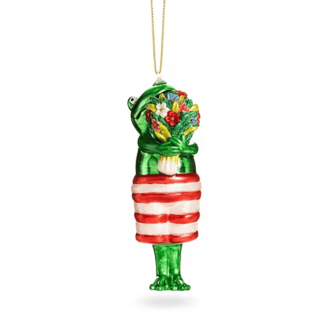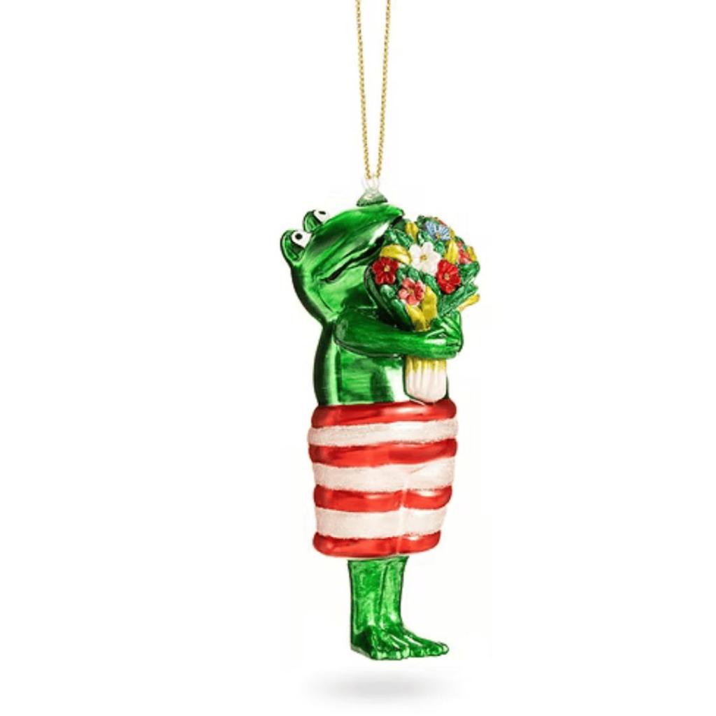 Kerstbal Kikker met Bloemenboeket – Glazen Ornament uit Kikker en zijn Vriendjes