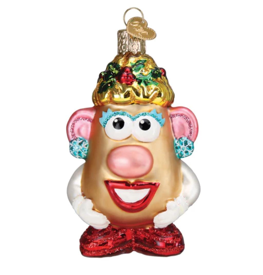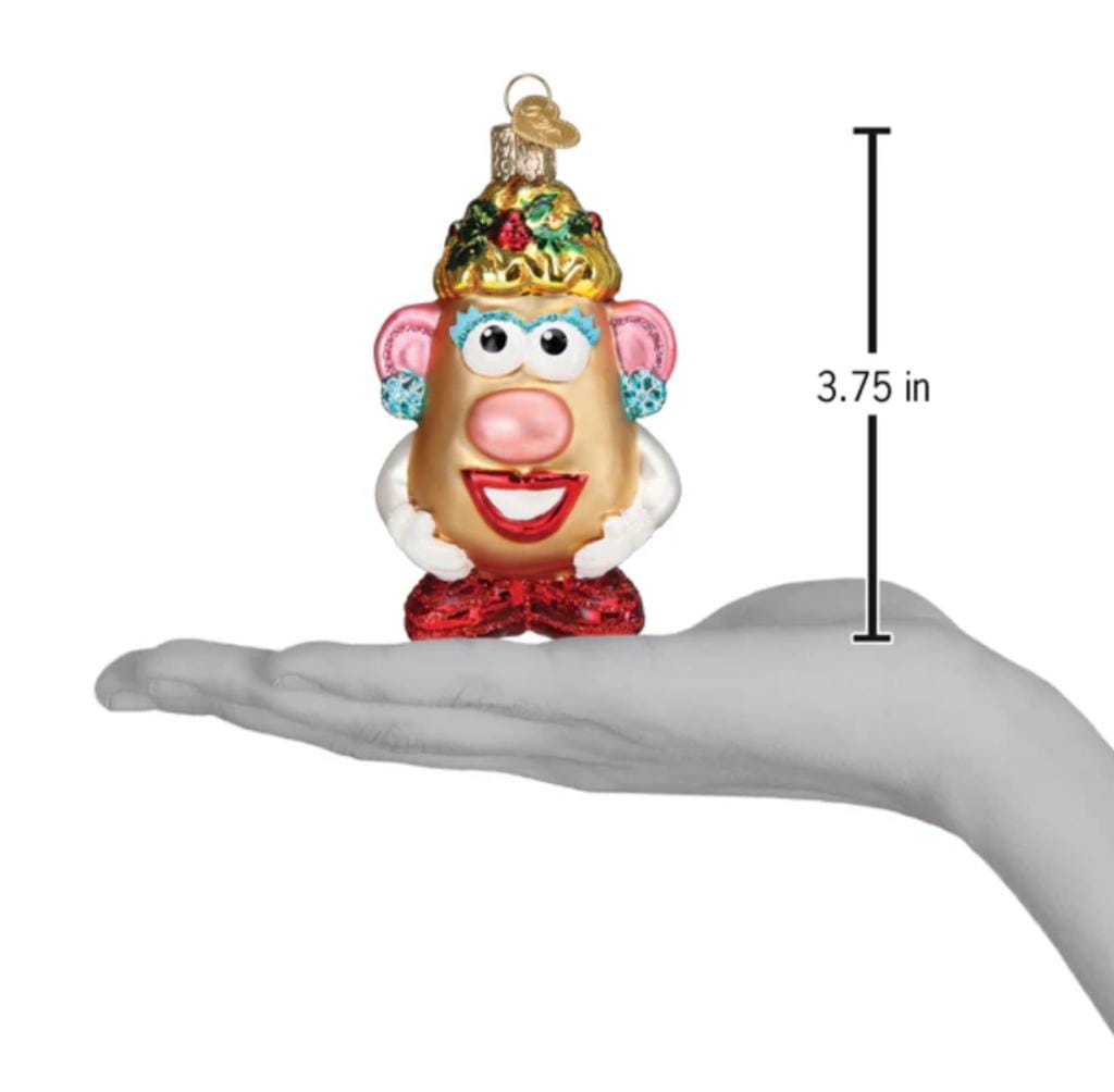 Reis naar de wereld van Mevrouw Aardappelhoofd met deze prachtige kerstbal! Dit geliefde personage, bekend van de kinderboeken, is nu verkrijgbaar als een prachtig handgemaakt kerstbal van Old World Christmas. Dit gedetailleerde ornament is een must-have voor elke verzamelaar en een prachtige toevoeging aan elke kinderkamer.