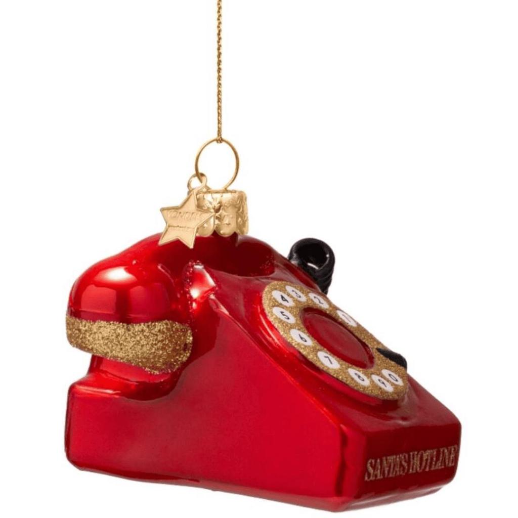 Kerstbal Rode Vintage Telefoon – Santa’s Hotline van Vondels (7 cm)